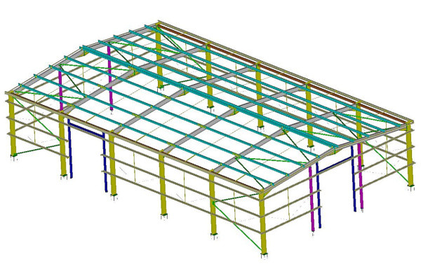 В основе — пространственный каркас из стальных портальных рам из горячекатаных двутавров.