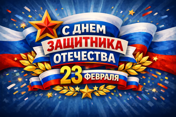 Поздравляем с праздником мужества, отваги и чести! В День защитника Отечества желаем стального здоровья, успехов во всех делах и начинаниях, а также уверенности в своих силах!