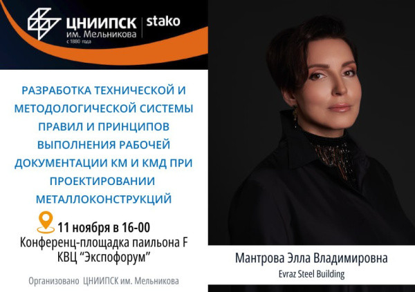 11 ноября с 14-00 до 18-00 ЦНИИПСК им. Мельникова в рамках 31-й Международной промышленной выставки «Металл-Экспо'2025» проведет 9-ю Международную конференцию «Металлические каркасы зданий: современные технологии и конструкции, риски эксплуатации». На мероприятие, которое состоится на конференц-площадке павильона F в КВЦ «Экспофорум» в Санкт-Петербурге приглашены специальные гости – эксперты в области проектирования, производства и формирования новых форматов работы участников рынка металлоконструкций.