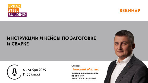 6 ноября прошёл вебинар «Инструкции и кейсы по заготовке и сварке», который продолжил цикл обучающих мероприятий для партнёров EVRAZ STEEL BUILDING.