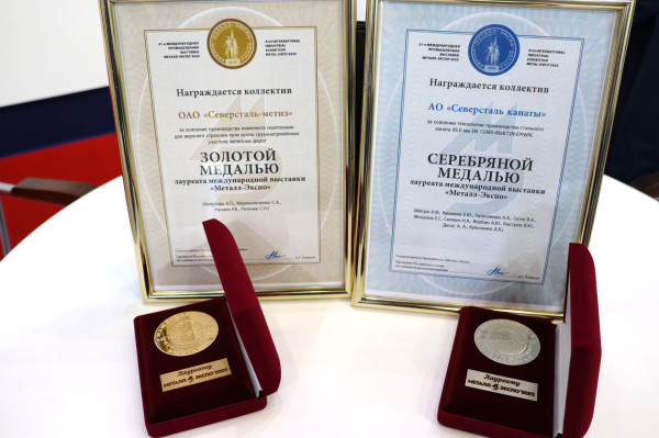 Еще одной серебряной медалью награжден стальной канат диаметром 95 мм с металлическим сердечником, покрытым полимерным материалом, произведенный на предприятии «Северсталь канаты» в Волгограде. Это рекордный для России и стран СНГ диаметр, освоенный впервые. Канат обеспечивает повышенную надежность подъемных и тяговых систем и замещает импортные аналоги, что важно для крупных инфраструктурных и промышленных объектов.